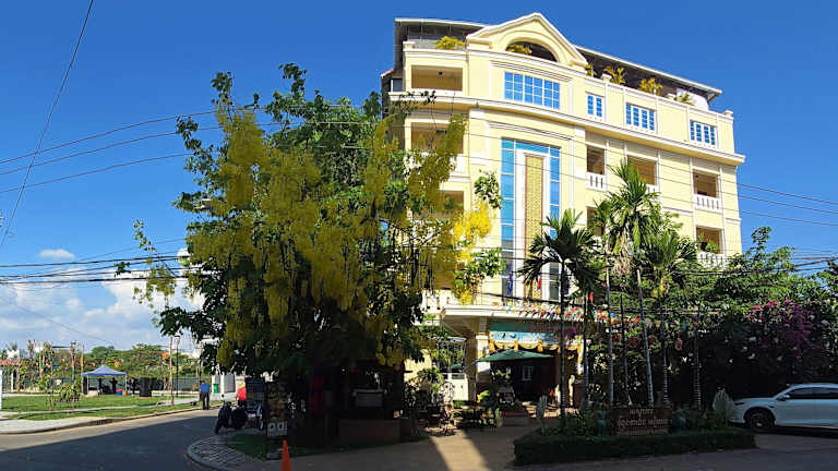 Das Grand Bayon Siem Reap Hotel befindet sich im Stadtteil Sok San, nur einen kurzen Spaziergang von der lebhaften Pub Street und dem Alten Markt entfernt. Der Nachtmarkt Angkor ist ebenfalls in der Nähe und die Königliche Residenz erreichen Sie nach einer kurzen Fahrt. Der Tempel Angkor Wat ist etwa 7,2 km entfernt und der internationale Flughafen Siem Reap ist bequem in 9 km zu erreichen.