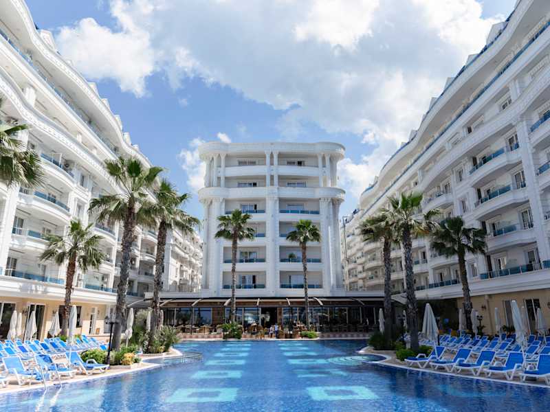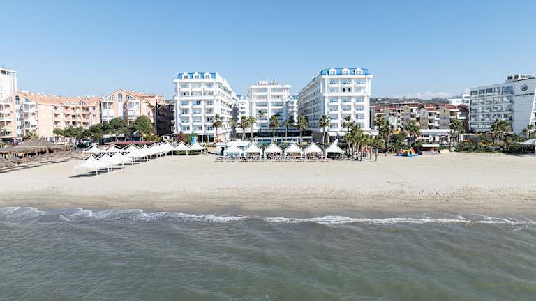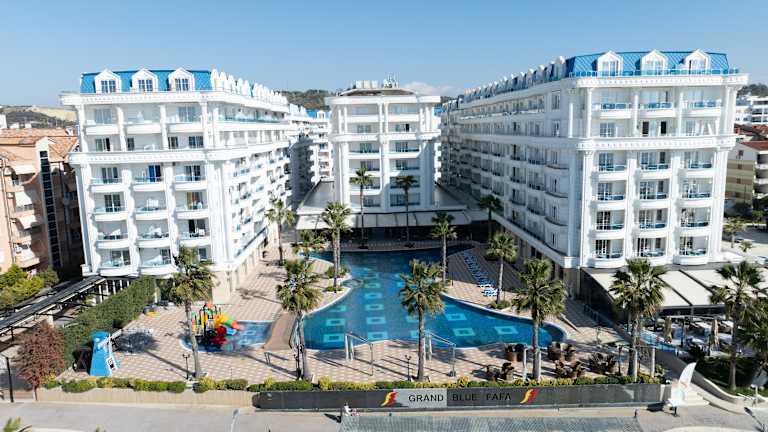 Grand Blue Fafa Resort & Spa ist ein modernes 5-Sterne-All-Inclusive-Resort direkt am Sandstrand von Golem, nur 30 Autominuten vom internationalen Flughafen Tirana und weniger als 20 Minuten von der Hafenstadt Durrës entfernt. Das Resort bietet geräumige und helle Zimmer, die meisten mit Balkon und Meerblick, und ist sowohl für Familien als auch für Paare ideal geeignet. Zur Ausstattung gehören mehrere Außenpools, ein privater Strandabschnitt mit kostenlosen Liegen und Sonnenschirmen, ein Wellness- & Spa-Center sowie Unterhaltungsprogramme für Kinder und Erwachsene. Das kulinarische Angebot umfasst mediterrane und internationale Küche: ein Hauptbuffet-Restaurant, À-la-carte-Optionen und mehrere Bars, darunter eine Strandbar und eine Poolbar. Mit professionellem Service, familienfreundlicher Atmosphäre und ausgezeichneter Lage an der Adriaküste Albaniens ist das Grand Blue Fafa Resort & Spa die ideale Wahl für einen erholsamen und unvergesslichen Urlaub.