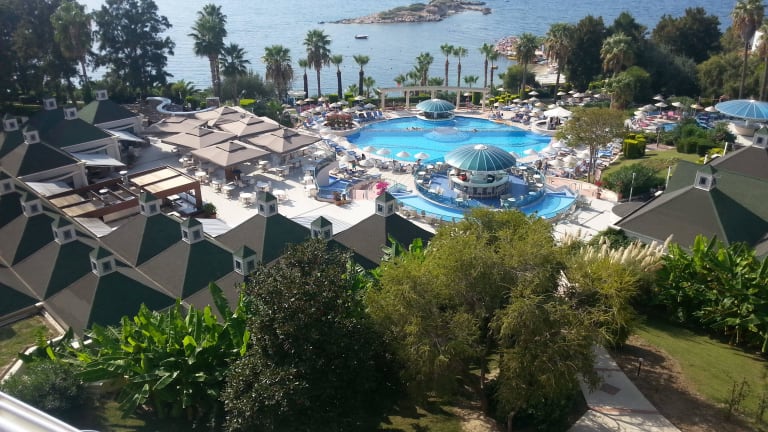 Das Hotel Grand Blue Sky in Kusadasi ist mit seinen 4 Sternen für einen Badeurlaub bestens geeignet. Es hat das Qualitätssiegel Quality Selection 2014 von HolidayCheck an Land gezogen. In fußläufiger Entfernung befinden sich allerhand Highlights, wie beispielsweise der Ladies Beach. Der Kustur Beach, die Strandpromenade Kusadasi, die Vogelinsel / Taubeninsel sowie der Hafen Kusadasi sind günstig gelegene Ziele im Umland.