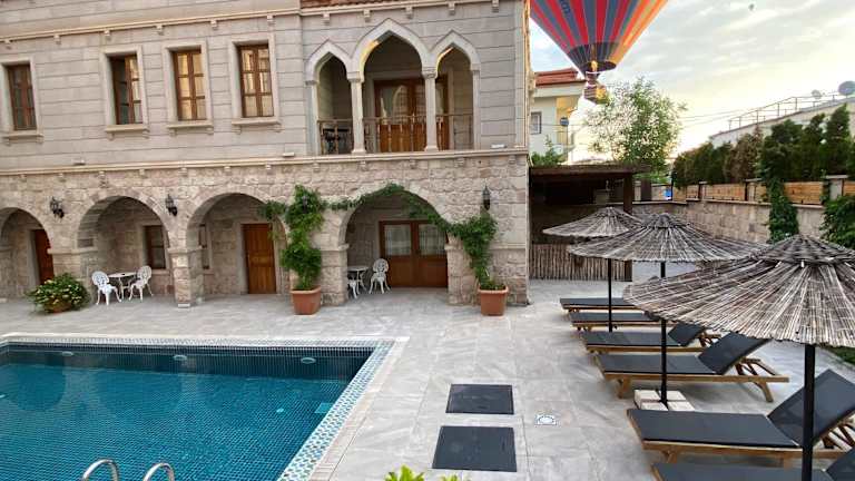 Das Grand Cappadocia Hotel in Göreme bietet Ihnen einen angenehmen Aufenthalt mit saisonalem Außenpool, Garten und Terrasse. Das freundliche Personal steht Ihnen rund um die Uhr zur Verfügung und das Restaurant verwöhnt Sie mit köstlichen Speisen. Die Zimmer sind komfortabel eingerichtet und verfügen über moderne Annehmlichkeiten wie Flachbild-TV und kostenfreies WLAN. Genießen Sie den Blick auf den Pool in einigen der Zimmer. Beginnen Sie Ihren Tag mit einem leckeren Frühstücksbuffet. Die Lage des Hotels ist ideal für Aktivitäten wie Radfahren und die Erkundung der Umgebung von Göreme.