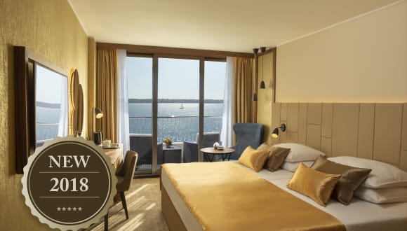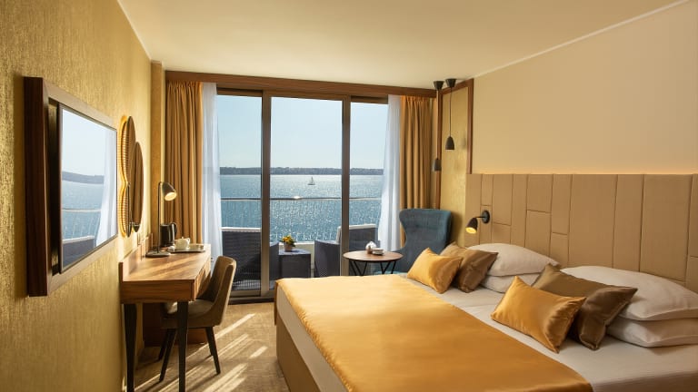Das Grand Hotel Bernardin verfügt über 241 modern eingerichtete Zimmer mit Balkon und Meerblick. 10 davon sind Executive Suiten, die mit luxuriösen Möbeln ausgestattet sind, 9 Deluxe Zimmer und 7 Mini Suiten. Im Hotel befinden sich Hallenbad mit geheiztem Meerwasser, Zentrum des Wohlbefindens Paradise Spa, Restaurant Pečina und Grand Restaurant, Grand Café, Cocktail Lounge mit Piano und bedeckte Terrasse Grand Garden. WiFi ist in allen Bereichen nutzbar und ist kostenlos. Kostenlose Parkplätze auf dem Parkplatz des Hotels.