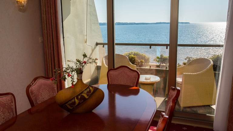 Zimmerausstattung: Balkon, Sat-TV, Radio, Telefon, WLAN-Internetzugang , Schreibtisch, Minibar, Klimaanlage, Bad - Dusche oder Badewanne, Haartrockner, Pflegepackung, Bademantel, Hausschuhe, Weckservice / Wecker 24-Stunden-Zimmerservice.