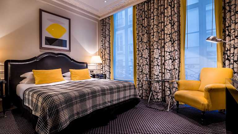 Das Grand Hôtel de L'Univers Saint-Germain bietet 33 Nichtraucherzimmer auf 6 Etagen. Jedes Zimmer ist einzigartig gestaltet und verfügt über eine individuelle Einrichtung mit Stoffen von renommierten Designern. Zur Ausstattung gehören unter anderem eine Klimaanlage, ein Safe, eine Minibar, ein Schreibtisch und ein TV-Gerät. Das Badezimmer ist mit einer Dusche oder einer Badewanne und einem Haartrockner ausgestattet.