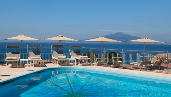 Das Hotel befindet sich ganz in der Nähe des historischen Zentrums von Sorrent. Die Innenausstattung ist mit hochwertigen Möblen – von ortsansässigen Handwerkern mit feinen Einlegearbeiten versehen – mit Marmorböden und bequemen Sofas außerordentlich einladend und komfortabel. ·Lage im Zentrum von Sorrent, ganz in der Nähe der Piazza Tasso und des Bahnhofs. ·Ruhige Panoramalage mit bezauberndem Blick auf den Golf von Neapel und den Vesuv.
