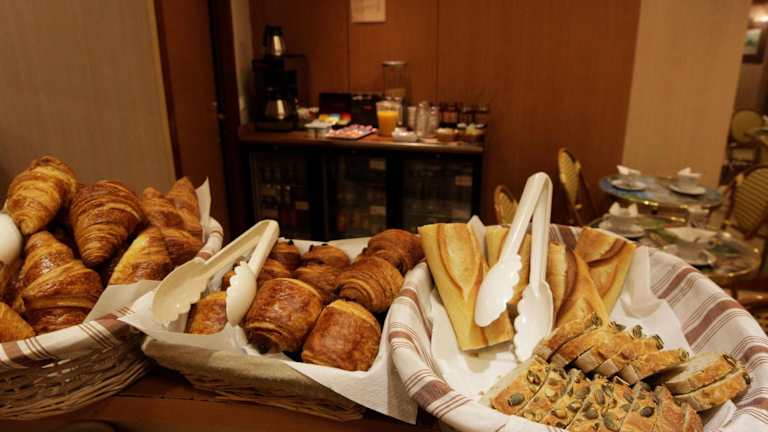 Das Hotel serviert Ihnen jeden Morgen ein leckeres Frühstück mit Brot, Gebäck und Marmelade. Sie haben die Wahl, das Frühstück im Speisesaal des Hotels oder auf Anfrage in Ihrem eigenen Zimmer zu genießen.