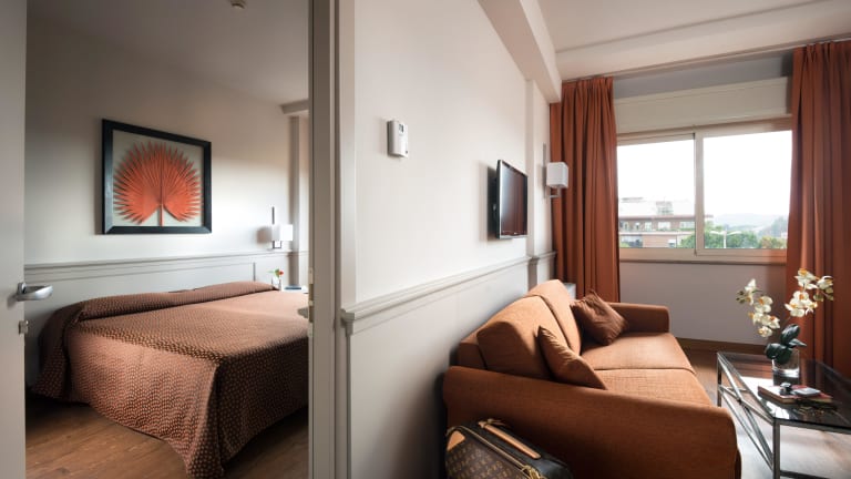 Das Grand Hotel Fleming by OMNIA hotels liegt in einer ruhigen Wohngegend von Rom, nur 10 Autominuten vom Olympiastadion, dem Auditorium und dem Foro Italico entfernt. Es bietet eine gute Verkehrsanbindung ans Stadtzentrum und liegt in der Nähe der GRA-Ringstraße und der Autobahn. Busse fahren in der Nähe ab und bringen Sie zum Vatikan, der nur 15 Fahrminuten entfernt liegt. Von dort aus können Sie die U-Bahn nutzen, um die Stadt zu erkunden.