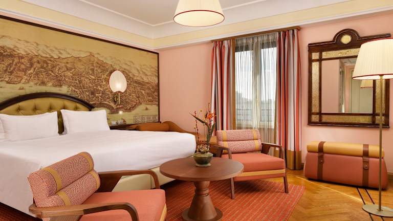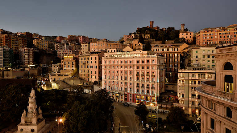 The Grand Hotel Savoia watches Genoa in motion, trains arriving from the north, ferries leaving for the Mediterranean, the city moving between stone and sea. Since 1897, it has been part of that rhythm: a place where people arrive, stay, and set out again. Today, the rhythm is the same but the stories have changed. Business travellers share breakfast with families tracing old roots; artists set up exhibitions in the same halls that once greeted diplomats. The scent of coffee drifts through marble corridors, and conversations rise and fall like the tide beyond the windows. Inside, every room is different — each shaped with its own materials, colours, and quiet references to the sea routes that have long defined this city. The Belle Époque details remain — polished wood, mosaic floors, soft light through etched glass — now paired with today’s quiet luxuries and a sense of ease that lets the city in rather than shutting it out. Guests gather beneath the glass dome for an aperitivo or linger over Ligurian dishes that carry the scent of olive oil, herbs, and salt air, before stepping out into the same streets that inspired them. The Savoia belongs to a Genoa that keeps reinventing itself, a city where old stone and new voices share the same narrow streets, and where comfort and history meet in a way that feels entirely of the present.