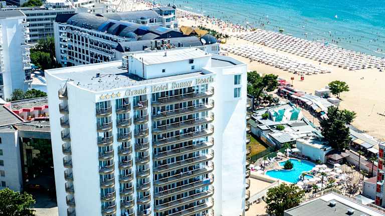 Das Grand Hotel Sunny Beach liegt in Sonnenstrand, nur 100 m vom berühmten Sonnenstrand entfernt. Das Zentrum des Ortes mit seinen vielfältigen Unterhaltungsangeboten ist ebenfalls in der Nähe. In der Umgebung gibt es mehrere Wasserparks und die Altstadt von Nessebar ist ca. 5,5 km entfernt. Der Flughafen von Bourgas liegt ca. 30 km entfernt.