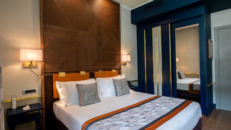 Die Zimmer sind klimatisiert und beheizt und verfügen über eine Terrasse mit Blick auf das Meer. Jedes Zimmer ist mit einem Doppelbett, einem Sofabett und auf Anfrage auch mit einem Zustellbett ausgestattet. Zu den Annehmlichkeiten zählen ein Safe, eine Minibar, WLAN, ein TV-Gerät sowie ein Badezimmer mit Dusche und Badewanne. Das Hotel bietet Familien- und Nichtraucherzimmer.