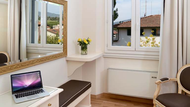 Die Zimmer im Grand Hotel Vittoria sind komfortabel und stilvoll eingerichtet und verfügen über alle Annehmlichkeiten, die Sie für einen angenehmen Aufenthalt benötigen. Jedes Zimmer ist klimatisiert und mit einem Flachbild-Sat-TV ausgestattet. Das private Badezimmer verfügt über eine Dusche und einen Haartrockner. Einige Zimmer bieten zudem einen herrlichen Blick auf die umliegenden Berge oder die Stadt.