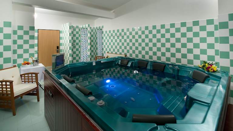 Im Grand Hotel können Sie sich im Innenpool entspannen und erfrischen. Die Umgebung bietet auch viele Möglichkeiten für Outdoor-Aktivitäten wie Wandern. Entdecken Sie die Schönheit der Natur und genießen Sie die frische Luft.