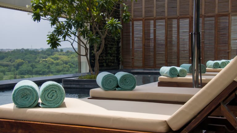 Die Unterkunft Grand Hyatt Gurgaon bietet Übernachtungsmöglichkeiten in einem Hotel mit einem Außenpool, einem kostenlosen Privatparkplatz, einem Garten und einer Gemeinschaftslounge. Die Unterkunft ist mit klimatisierten Zimmern ausgestattet und bietet kostenlosen WLAN-Zugang sowie einen Zimmerservice.