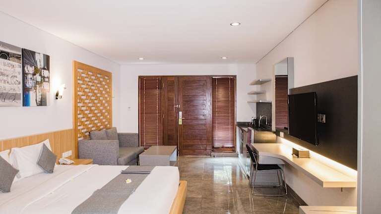 Das Grand Kesambi Resort and Villas Seminyak ist eine moderne Unterkunft, die 2015 eröffnet wurde und 2025 umfassend renoviert wird. Die Einrichtung umfasst eine 24-Stunden-Rezeption, Gepäckaufbewahrung, einen Safe und ein Business-Center. WLAN ist in den öffentlichen Bereichen verfügbar. Das Hotel bietet eine Vielzahl von Freizeitmöglichkeiten, darunter einen Garten, einen TV-Raum und ein Spielzimmer. Für Gäste, die mit dem Auto anreisen, stehen kostenlose Parkplätze zur Verfügung. Zusätzlich werden zahlreiche Services angeboten, wie ein Babysitterservice, Wäscheservice sowie ein Flughafentransfer.