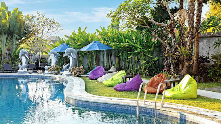 Das Hotel befindet sich in Kerobokan, etwa 6 km vom Strand entfernt. Die Entfernung zum Stadtzentrum beträgt ca. 1 km und zum Bahnhof etwa 6,3 km.