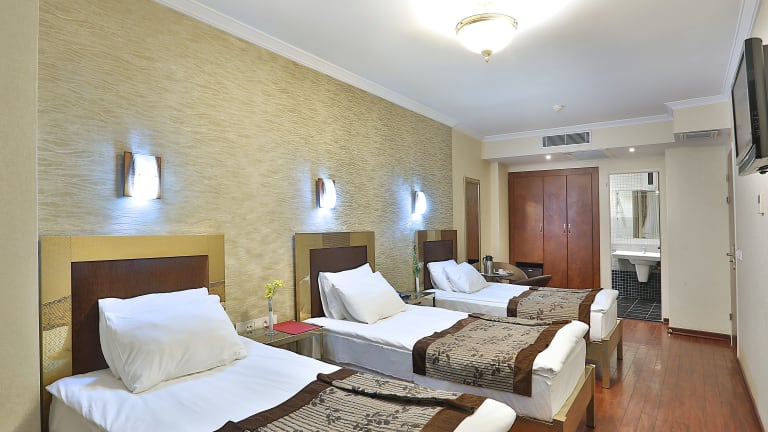 Das Grand Madrid Hotel in Istanbul ist eine moderne Unterkunft in der Altstadt, die Ihnen einen angenehmen Aufenthalt bietet. Mit kostenfreiem WLAN, kostenfreien Parkplätzen und einem atemberaubenden Blick auf den Bosporus vom Dach aus können Sie Ihren Aufenthalt in vollen Zügen genießen. Die eleganten Zimmer sind schallisoliert und mit modernen Annehmlichkeiten ausgestattet. Im Restaurant des Hotels können Sie traditionelle türkische Küche sowie internationale Gerichte genießen. Die Lage des Hotels ist ideal, in der Nähe des Campus der Universität Istanbul und des berühmten Gran Bazaar. Der internationale Flughafen Atatürk ist mit dem Auto in nur 30 Minuten zu erreichen.