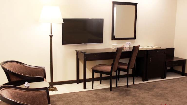 Das Hotel bietet mehrere gastronomische Einrichtungen, darunter das Sultan Restaurant mit Livemusik, das türkische, usbekische und europäische Küche serviert. Das Harem Terrace Restaurant bietet einen Panoramablick auf Taschkent und ist der perfekte Ort, um Mahlzeiten zu genießen.