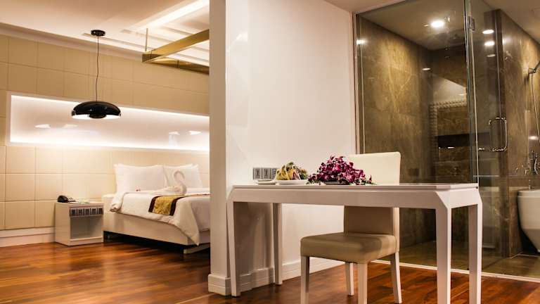 Die Zimmer im Hotel sind komfortabel und gemütlich eingerichtet. Sie verfügen über eine Klimaanlage, ein Doppelbett und eine Minibar. Zur Ausstattung gehören auch ein Telefon, ein Fernseher und WLAN, um den Gästen eine angenehme Kommunikation und Unterhaltung zu ermöglichen. Rollstuhlgerechte Zimmer sind auf Anfrage verfügbar.