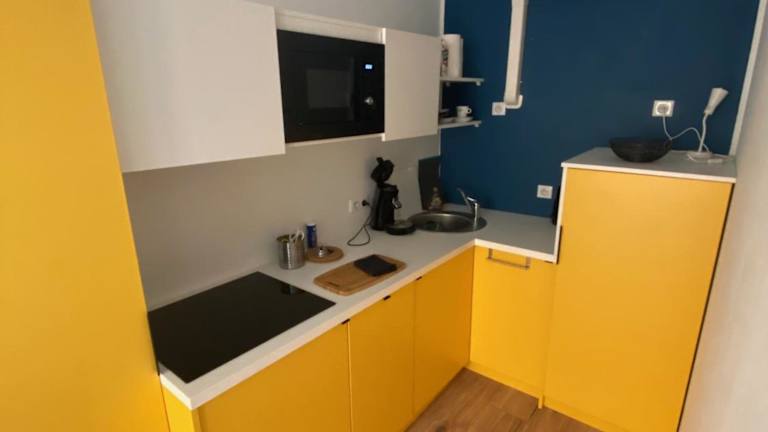 Die Ferienwohnung umfasst ein Schlafzimmer, ein Wohnzimmer und eine voll ausgestattete Küche, die mit einem Kühlschrank und einer Kaffeemaschine ausgestattet ist. Des Weiteren gibt es ein Badezimmer mit Dusche und Haartrockner. Handtücher und Bettwäsche werden zur Verfügung gestellt.