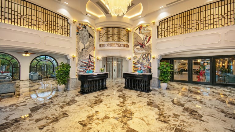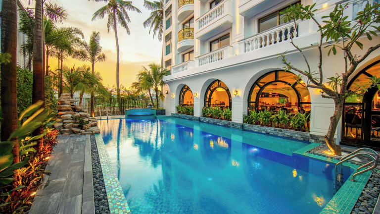 Die Unterkunft Grand Sunrise Palace Hoi An bietet Übernachtungsmöglichkeiten mit verschiedenen Annehmlichkeiten, darunter kostenlose Fahrräder, einen Außenpool, ein Fitnesscenter und ein Restaurant. Diese Unterkunft ist umgeben von einem Garten und verfügt über einen Whirlpool sowie ein türkisches Dampfbad. Zu den Services zählen eine 24-Stunden-Rezeption, Flughafentransfers, ein Kinderclub und kostenfreies WLAN in der gesamten Anlage.