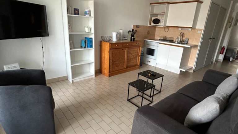 Das Grand T2 proche de la mer bietet gemütliche Unterkünfte mit einer Terrasse und einem Wasserkocher. Das Apartment verfügt über ein komfortables Schlafzimmer, in dem Sie nach einem Tag am Strand erholsamen Schlaf finden können. Die gut ausgestattete Küchenzeile bietet Ihnen die Möglichkeit, Ihre eigenen Mahlzeiten zuzubereiten, und das moderne Badezimmer verfügt über eine Dusche. Zur Ausstattung gehört auch ein Flachbild-TV und kostenfreies WLAN. Handtücher und Bettwäsche können gegen Aufpreis zur Verfügung gestellt werden.