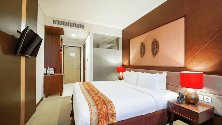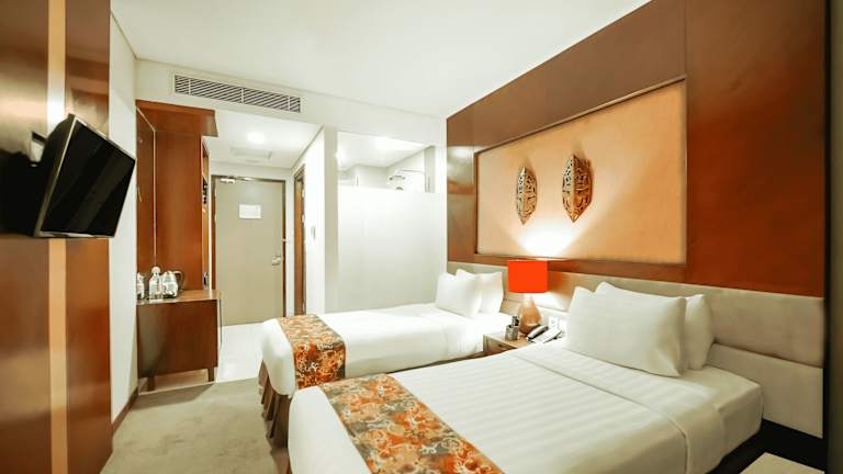 Die Zimmer im Grand Tjokro Hotel Balikpapan sind komfortabel und gemütlich eingerichtet. Jedes Zimmer verfügt über einen Flachbild-Sat-TV und einige Zimmer bieten einen separaten Sitzbereich, in dem Sie sich entspannen können. Ein Wasserkocher ist ebenfalls vorhanden, so dass Sie sich eine Tasse Tee oder Kaffee zubereiten können. Das private Badezimmer ist mit Bademänteln, Hausschuhen und kostenfreien Pflegeprodukten ausgestattet.