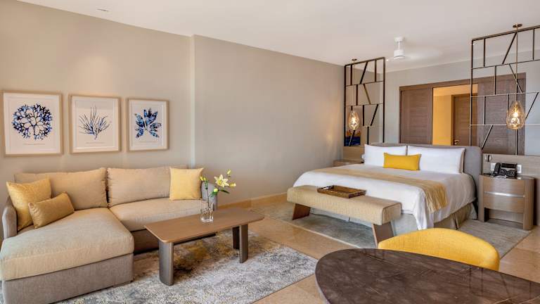 Die Zimmer sind mit individuellen Klimaanlagen, Minibar, Safe und WLAN ausgestattet. Viele Zimmer verfügen über einen Balkon oder eine Terrasse mit Meerblick. Die Badezimmer sind mit Dusche und Whirlwanne ausgestattet, hinzu kommen Bademäntel und Kosmetikartikel. Es sind auch barrierefreie Zimmer buchbar.