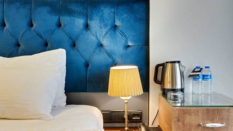 Die Zimmer des Grande Stella Hotels sind mit modernen Annehmlichkeiten ausgestattet, darunter eine Klimaanlage, Heizung, ein Flachbild-TV mit Satellitenkanälen, ein Kühlschrank und eine Minibar. Jedes Zimmer verfügt über ein Badezimmer mit Dusche und kostenfreien Pflegeprodukten. Zu den weiteren Annehmlichkeiten gehören eine Tee-/Kaffeemaschine, Hausschuhe sowie kostenloses WLAN. Familien- und Nichtraucherzimmer sind ebenfalls verfügbar.