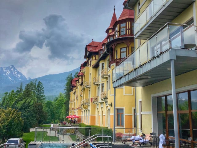 Das Grandhotel Praha in Tatranská Lomnica ist ein exquisites Hotel, das Ihnen einen unvergesslichen Aufenthalt inmitten der atemberaubenden Kulisse der Hohen Tatra bietet. Mit kostenfreien Wellnesseinrichtungen und einem einzigartigen Infinity-Pool im Freien, von dem aus Sie das Tal und die Berge der Hohen Tatra bewundern können, wird Ihr Urlaub hier zu einem wahren Genuss. Das Hotel bietet stilvolle Zimmer, eine reiche Geschichte und eine hervorragende Küche, die Sie im traditionellen Restaurant genießen können. Egal zu welcher Jahreszeit, das Grandhotel Praha ist immer eine gute Wahl für Ihren Aufenthalt.