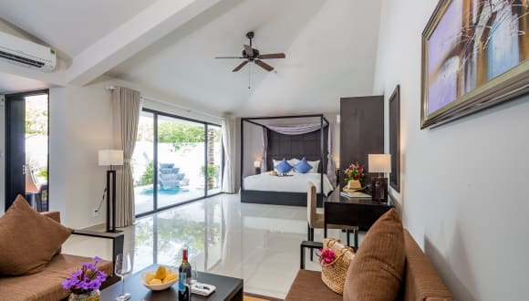 Das Grandvrio Ocean Resort Da Nang ist ein luxuriöses Hotel in Dien Ban, in unmittelbarer Strandnähe. Das Resort bietet eine Vielzahl von Annehmlichkeiten wie einen Außenpool, einen schönen Garten und einen Spielplatz. Die Zimmer sind komfortabel und stilvoll eingerichtet und verfügen über einen Balkon, eine Klimaanlage und kostenfreies WLAN. Genießen Sie ein reichhaltiges Frühstücksbuffet und entspannen Sie im Wellnessbereich mit Sauna und Spa. Für Sportbegeisterte gibt es ein Fitnessstudio und verschiedene Wassersportmöglichkeiten. Das Hotel bietet auch einen Kinderpool und einen Miniclub für die kleinen Gäste.