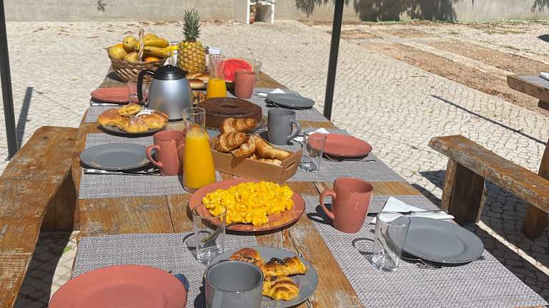 Jeden Morgen wird im Granja da Cabrita ein köstliches Frühstück serviert. Sie haben die Wahl zwischen verschiedenen kontinentalen, vegetarischen und veganen Optionen, sodass für jeden Geschmack etwas dabei ist. Starten Sie den Tag gestärkt und genießen Sie Ihr Frühstück in der gemütlichen Atmosphäre des Bed & Breakfasts.