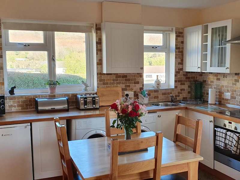 Das Ferienhaus beinhaltet ein Schlafzimmer und ist ausgestattet mit einer Küche, die einen Kühlschrank und einen Ofen enthält. Es gibt ein Badezimmer mit Dusche, Haartrockner und Waschmaschine. Handtücher sowie Bettwäsche werden zur Verfügung gestellt.