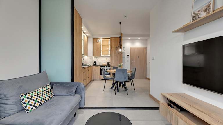 Das GRANO FLATS - Sobieszewo - Baltic Porto befindet sich in Danzig, in der Region Pommern. Die Insel Sobieszewo ist nur 3,3 km entfernt und das Nationale Schifffahrtsmuseum erreichen Sie nach 20 km. Der Flughafen Lech-Wałęsa in Danzig ist 45 km entfernt. Die Umgebung bietet zahlreiche Möglichkeiten zum Wandern, Angeln und Radfahren und lädt zu Erkundungstouren ein.
