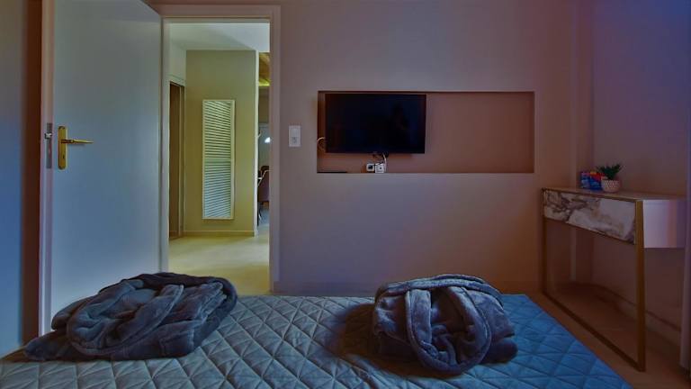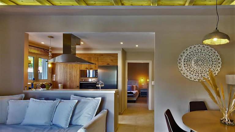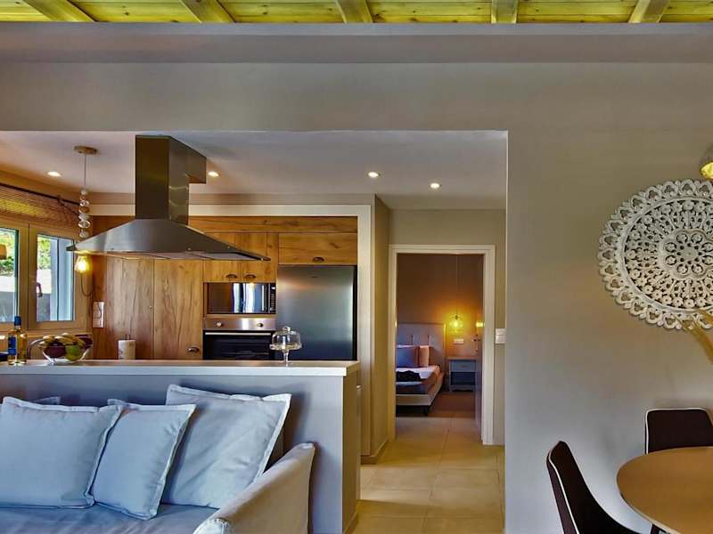 Gratelia Apartment Damnoni bietet Übernachtungsmöglichkeiten mit Bergblick, Terrassen und Balkonen. Die Ferienwohnung ist klimatisiert und verfügt über ein Schlafzimmer, ein Wohnzimmer, eine voll ausgestattete Küche sowie ein Badezimmer mit Dusche und kostenlosen Pflegeprodukten. Handtücher und Bettwäsche werden bereitgestellt.