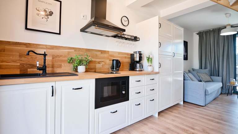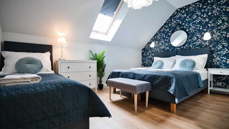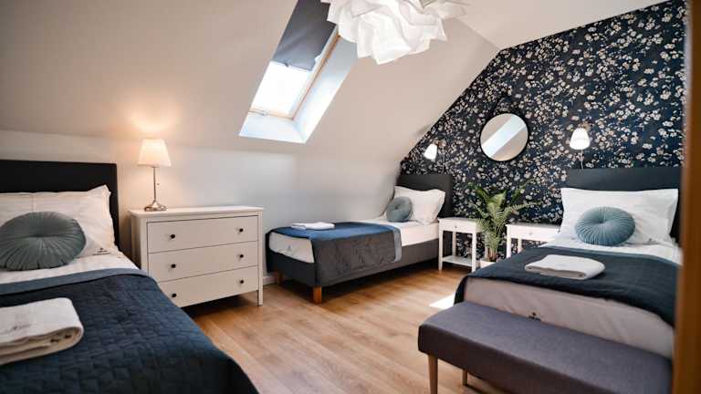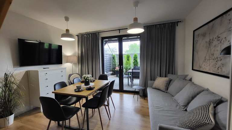 Die Ferienwohnung besteht aus zwei Schlafzimmern und einem Wohnzimmer. Sie ist mit einer voll ausgestatteten Küchenzeile ausgestattet, die einen Kühlschrank und eine Kaffeemaschine umfasst. Das Badezimmer ist mit einer Dusche und einem Haartrockner ausgestattet. Handtücher und Bettwäsche werden zur Verfügung gestellt.