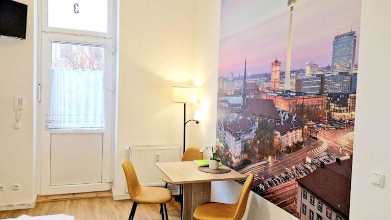Das Green Apartment KM3 Studio mit Terrasse befindet sich in der Karl-Marx-Straße 196, weniger als 5 km von der East Side Gallery und 6,4 km von der Topographie des Terrors entfernt. Die Entfernung zum U-Bahnhof Alexanderplatz beträgt 6,7 km und zum Gendarmenmarkt 6,8 km. Der Flughafen Berlin Brandenburg ist 18 km von der Unterkunft entfernt.