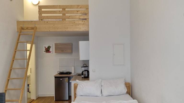 Das Apartment verfügt über ein Schlafzimmer, eine Küchenzeile, die mit einem Kühlschrank und einer Herdplatte ausgestattet ist, sowie einen Flachbild-TV und einen Sitzbereich. Das Badezimmer ist mit einer Dusche ausgestattet. Handtücher und Bettwäsche werden zur Verfügung gestellt und gemäß den Richtlinien der lokalen Behörden gewaschen.