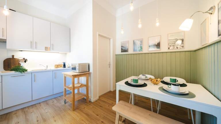 Die Ferienwohnung hat ein Schlafzimmer und ist mit einem Flachbild-TV mit Satellitenkanälen sowie einer gut ausgestatteten Küche, einschließlich Kühlschrank und Geschirrspüler, ausgestattet. Ein Badezimmer mit Dusche ist ebenfalls vorhanden. Handtücher und Bettwäsche werden bereitgestellt.