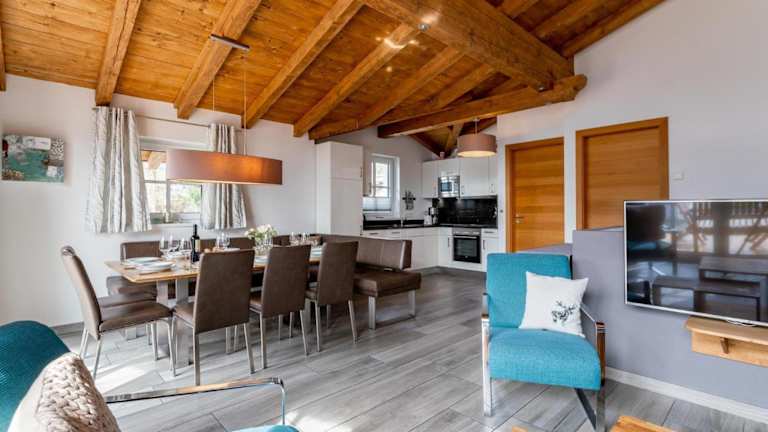 Das Ferienhaus umfasst 4 Schlafzimmer, eine voll ausgestattete Küche mit Kühlschrank und Geschirrspüler, ein Wohnzimmer mit TV sowie einen Sitzbereich. Es gibt 3 Badezimmer, die mit Duschen ausgestattet sind. Handtücher und Bettwäsche werden bereitgestellt.