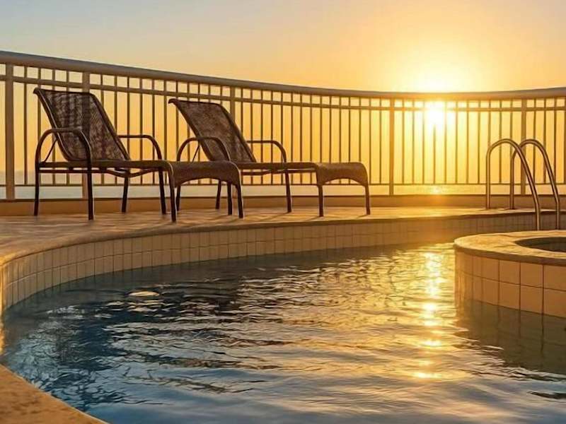 Die Freizeiteinrichtungen umfassen einen Außenpool, ein Fitnesscenter, eine Sauna und ein Dampfbad. Bequeme Liegen stehen auf der Terrasse bereit und eine Pool-/Snackbar ist ebenfalls vorhanden.