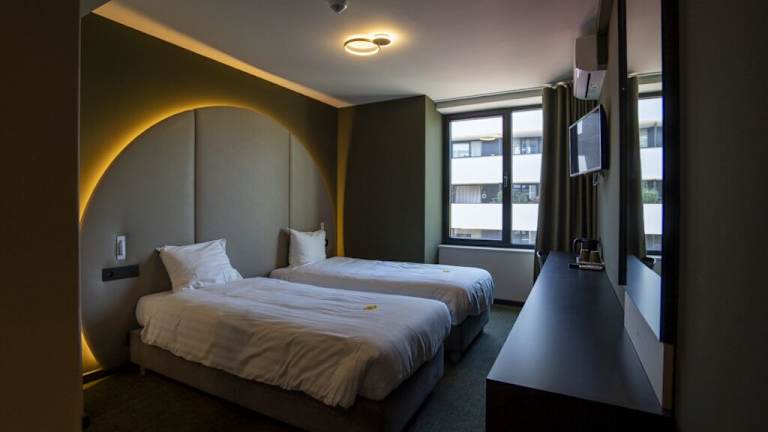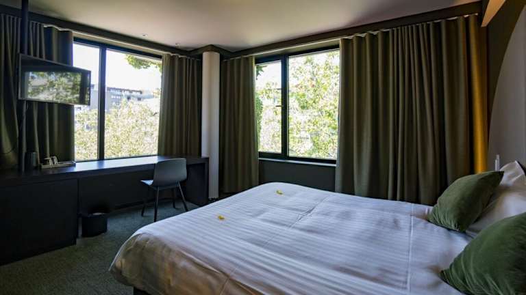 Das Green Hotel befindet sich im Zentrum von Genk, direkt neben dem Hauptbahnhof. Diese zentrale Lage ermöglicht es den Gästen, bequem zu den zahlreichen Geschäften, Restaurants und Bars in der Umgebung zu gelangen. Die Umgebung des Hotels bietet auch großartige Möglichkeiten für Outdoor-Aktivitäten wie Wandern und Mountainbiken. Der Nationalpark Hoge Kempen, ein beliebtes Ziel für Naturliebhaber, liegt nur 10 km entfernt. Das Kulturzentrum C-Mine, das auf dem Gelände einer alten Zeche liegt, ist ebenfalls in der Nähe und lädt zu Besichtigungen ein. Das Industriegebiet ist innerhalb von 10 Minuten zu erreichen.