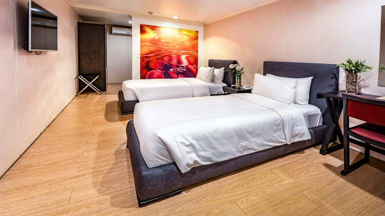 Das Green Sun Hotel in Makati City ist eine ideale Unterkunft für Reisende, die nach einem komfortablen Aufenthalt suchen. Das Hotel bietet eine Vielzahl von Annehmlichkeiten wie ein hauseigenes Restaurant, kostenloses WLAN und eine 24-Stunden-Rezeption. Die Zimmer sind gut ausgestattet und bieten Gästen Annehmlichkeiten wie Kabel-TV, einen Safe und eine Tee- / Kaffeemaschine. Das Hotel bietet auch kostenfreie Parkplätze und Tagungseinrichtungen.