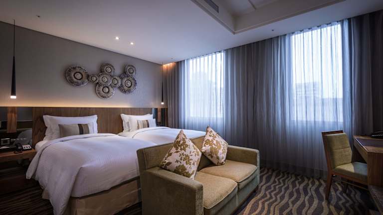 Das Green World Hotel Jian Pei Suites liegt nur einen 8-minütigen Spaziergang vom MRT-Bahnhof Songjiang Nanjing entfernt. Die günstige Lage ermöglicht es Ihnen, bequem die Sehenswürdigkeiten der Stadt zu erkunden. Das Kaufhaus Pacific Sogo ist nur eine 10-minütige Autofahrt entfernt und der Wolkenkratzer Taipei 101, ein Wahrzeichen der Stadt, erreichen Sie in 15 Minuten. Der internationale Flughafen Taiwan Taoyuan ist ebenfalls in nur 50 Minuten erreichbar.