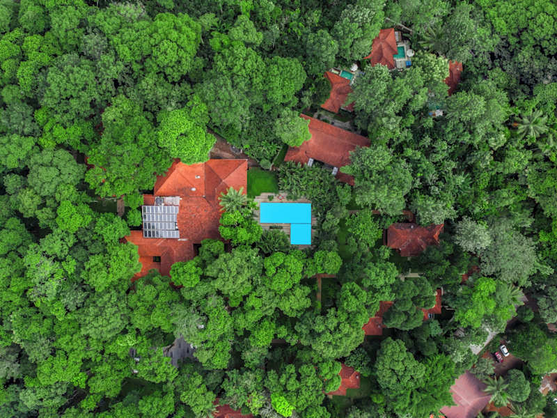 Das Greenwoods Resort in Kumily bietet Ihnen einen luxuriösen Aufenthalt inmitten einer wunderschönen natürlichen Umgebung. Mit einem Außenpool und elegant eingerichteten Zimmern, die kostenfreies WLAN bieten, können Sie hier in vollen Zügen entspannen. Das Resort bietet zudem ein vielfältiges Freizeitangebot mit Wandermöglichkeiten und einem Fitnesscenter. Genießen Sie die gemütlich eingerichteten Zimmer mit hellen Holzmöbeln und großen Fenstern, die viel Tageslicht hereinlassen. Im eigenen Bad finden Sie eine Dusche und Pflegeprodukte vor. Im Restaurant Amritham können Sie eine abwechslungsreiche Auswahl an indischen, chinesischen und kontinentalen Gerichten genießen. Der Zimmerservice steht Ihnen auf Anfrage zur Verfügung. Die Lage des Resorts ist ideal, nur 5 Gehminuten vom Busbahnhof Kumali und 110 km vom Bahnhof Kottayam entfernt. Der internationale Flughafen Cochin ist etwa 180 km entfernt.
