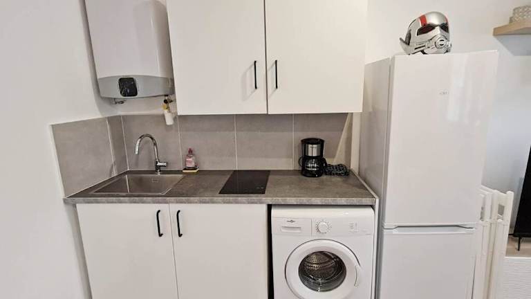 Die Ferienwohnung verfügt über ein Schlafzimmer, ein Wohnzimmer und eine voll ausgestattete Küche mit Kühlschrank und Kaffeemaschine. Des Weiteren gibt es ein Badezimmer mit Dusche und Haartrockner. Handtücher und Bettwäsche werden bereitgestellt.