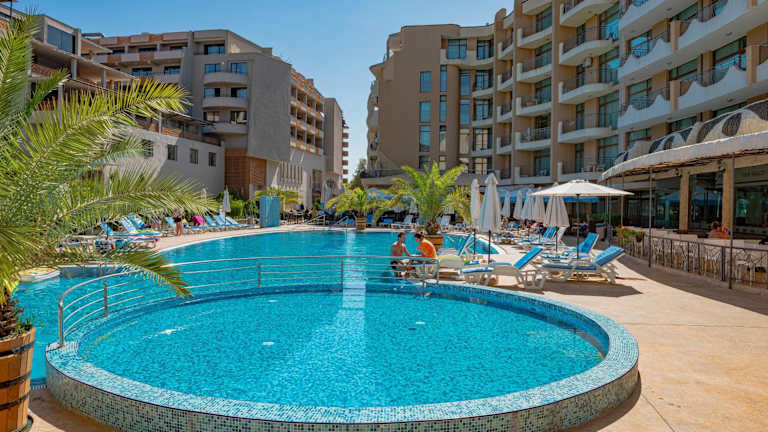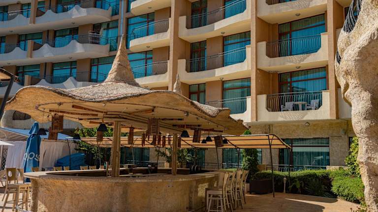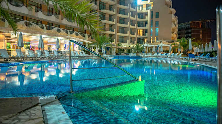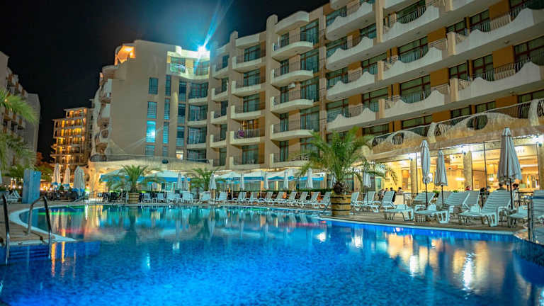 Die Unterkunft grenzt an die Hauptstraße im Sonnenstrand, eine attraktive Lage, da sie sich nur 500 m vom Strand Sunny Beach entfernt befindet. In der Nähe sind die Altstadt von Nessebar (2,8 km) und der Wasserpark Action AquaPark (4,3 km). Der Flughafen Burgas ist ebenfalls nur 26 km entfernt.