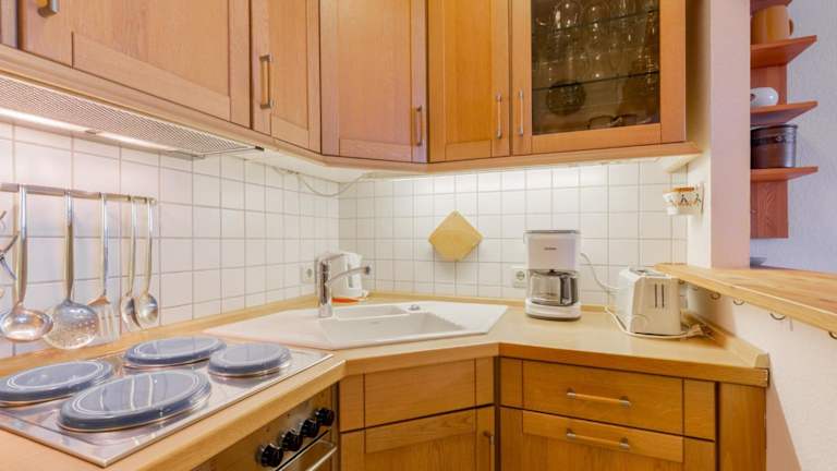 Die Ferienwohnung Grömitz-Center Whg 20 verfügt über zwei Schlafzimmer, ein Wohnzimmer mit Flachbild-TV sowie eine gut ausgestattete Küche mit Kühlschrank und Ofen. Ein Badezimmer mit Dusche ist ebenfalls vorhanden. Zudem bietet die Wohnung einen Balkon mit Seeblick.