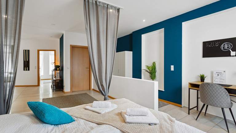 Die Ferienwohnung umfasst 1 Schlafzimmer, ein Wohnzimmer sowie eine voll ausgestattete Küche, die mit einem Kühlschrank und einer Kaffeemaschine ausgestattet ist. Ein Badezimmer mit Dusche und kostenlosen Pflegeprodukten ist ebenfalls vorhanden. Handtücher und Bettwäsche werden zur Verfügung gestellt.