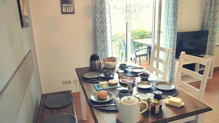 Die Große Familien-Ferienwohnung in Strandnähe befindet sich in Kühlungsborn, nur 500 m vom Strand entfernt. Weitere Strände, wie der Strand Rieden und der Strand Kagsdorf, sind in 700 m bzw. 1,8 km erreichbar. In der Umgebung befinden sich zudem der Hafen Kühlungsborn in 4,9 km Entfernung sowie der Zoo Rostock und das Volkstheater Rostock, jeweils 30 km entfernt. Der nächste Flughafen ist der Flughafen Rostock-Laage, welcher 75 km vom Objekt liegt.