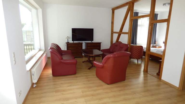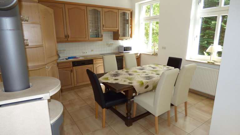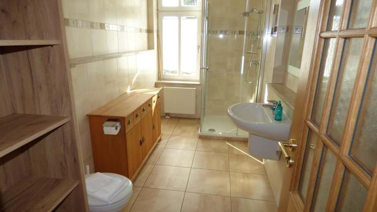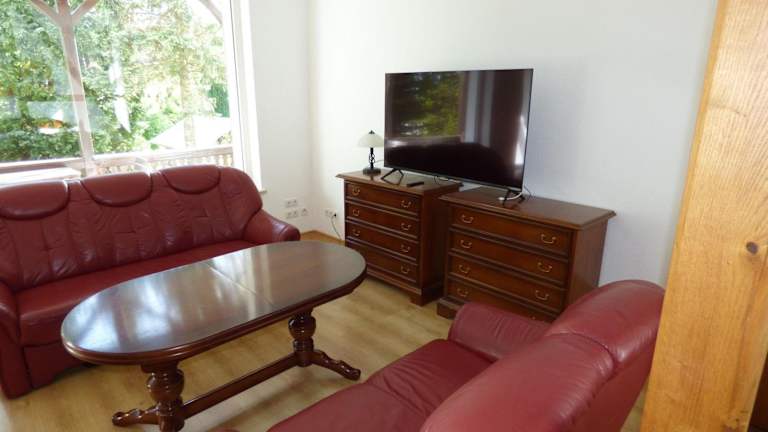 Grosse-Ferienwohnung-Wa2-100qm-im-Erdgeschoss-der-Villa-Walhall bietet eine großzügige Ferienwohnung im Erdgeschoss mit einer Terrasse. Die Unterkunft stellt eine Nichtraucherumgebung zur Verfügung und es sind keine Haustiere gestattet. Die Unterkunft ist für Feierlichkeiten, insbesondere Junggesellenabschiede, nicht geeignet.