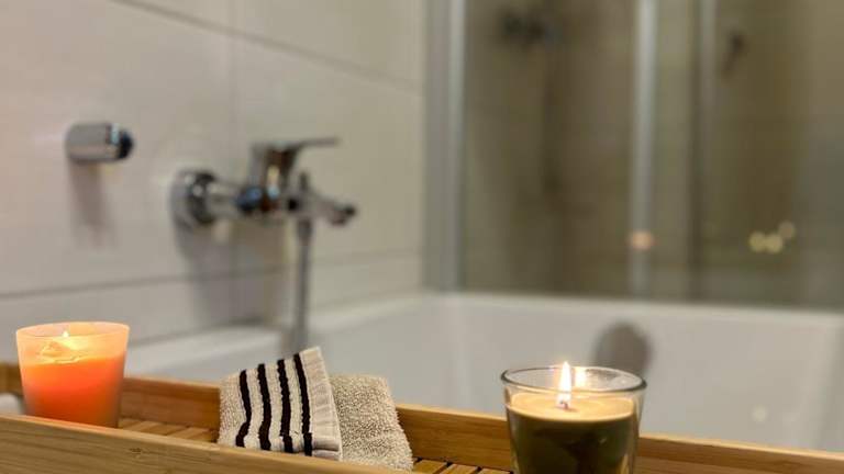 Die Ferienwohnung verfügt über zwei Schlafzimmer, ein Wohnzimmer, eine gut ausgestattete Küche und ein Badezimmer mit Dusche und Badewanne. Ein Satelliten-Flachbild-TV ist ebenfalls vorhanden. Handtücher und Bettwäsche werden bereitgestellt.